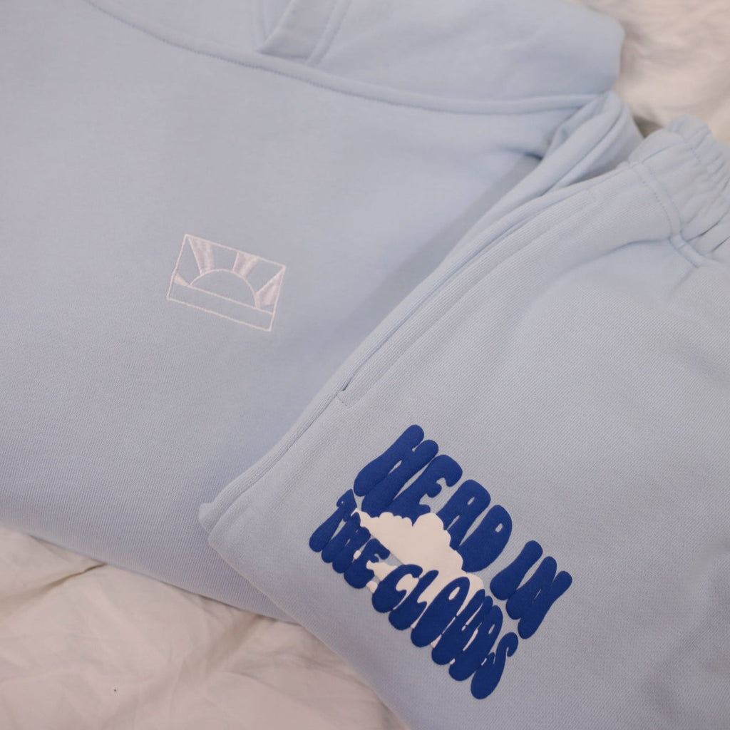You asked for more of the head in the clouds design in cosier baggier options so here she is in a beaut icy winter blue. Matching sweat sets available to buy separately! Perfect for if you need different sizing across the two.