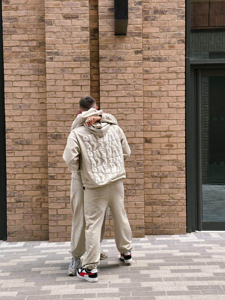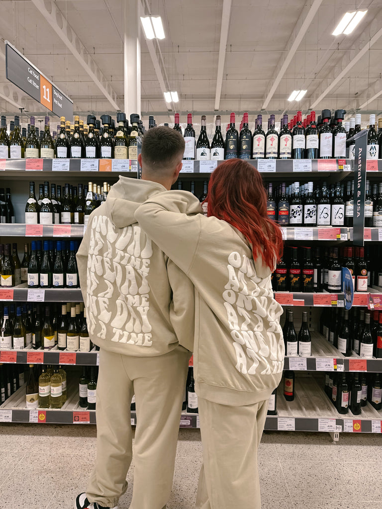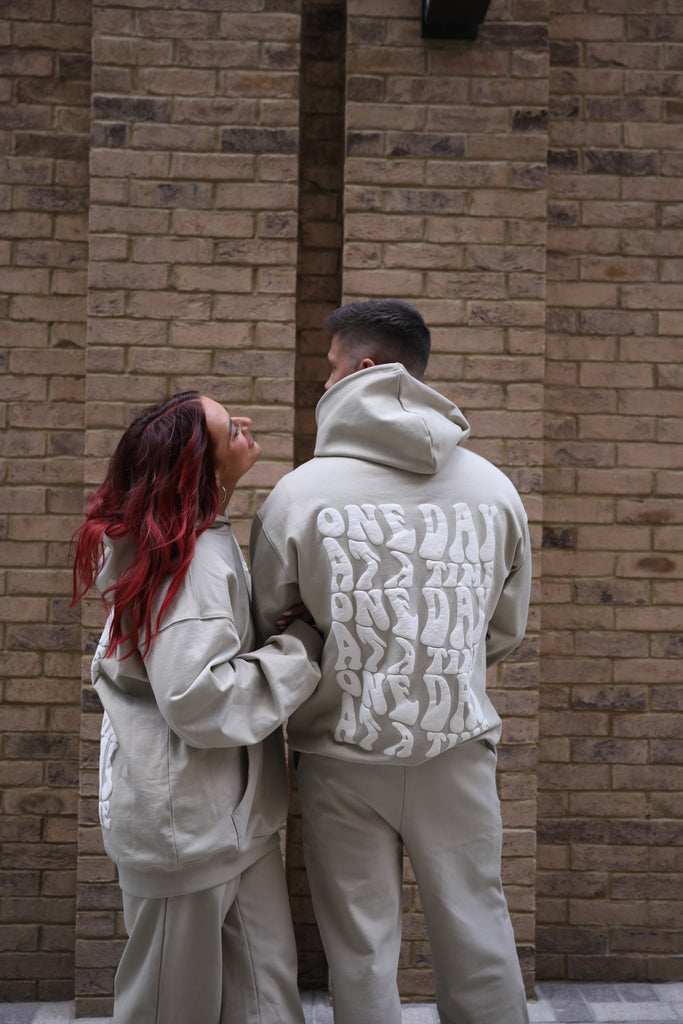 Looking for the perfect airport fit? Late night snack run? Pump cover? How about a cool summers evening in the garden? WELL! Look no further! Our 'One day at a time' hoodie is the perfect oversized fit for those cool and casual days :) With a jersey inner lining, it is lighter than our usual sets, making it the ideal hoodie for warmer days and making gains!