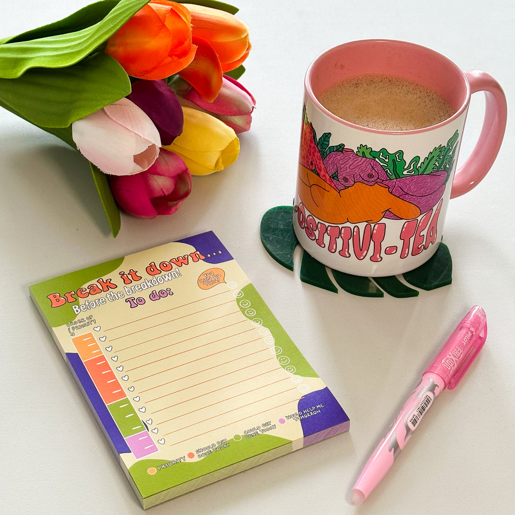 Break it down, before the breakdown. A handy compartmentalised to do list, helping you focus on your priorities without getting too overwhelmed.