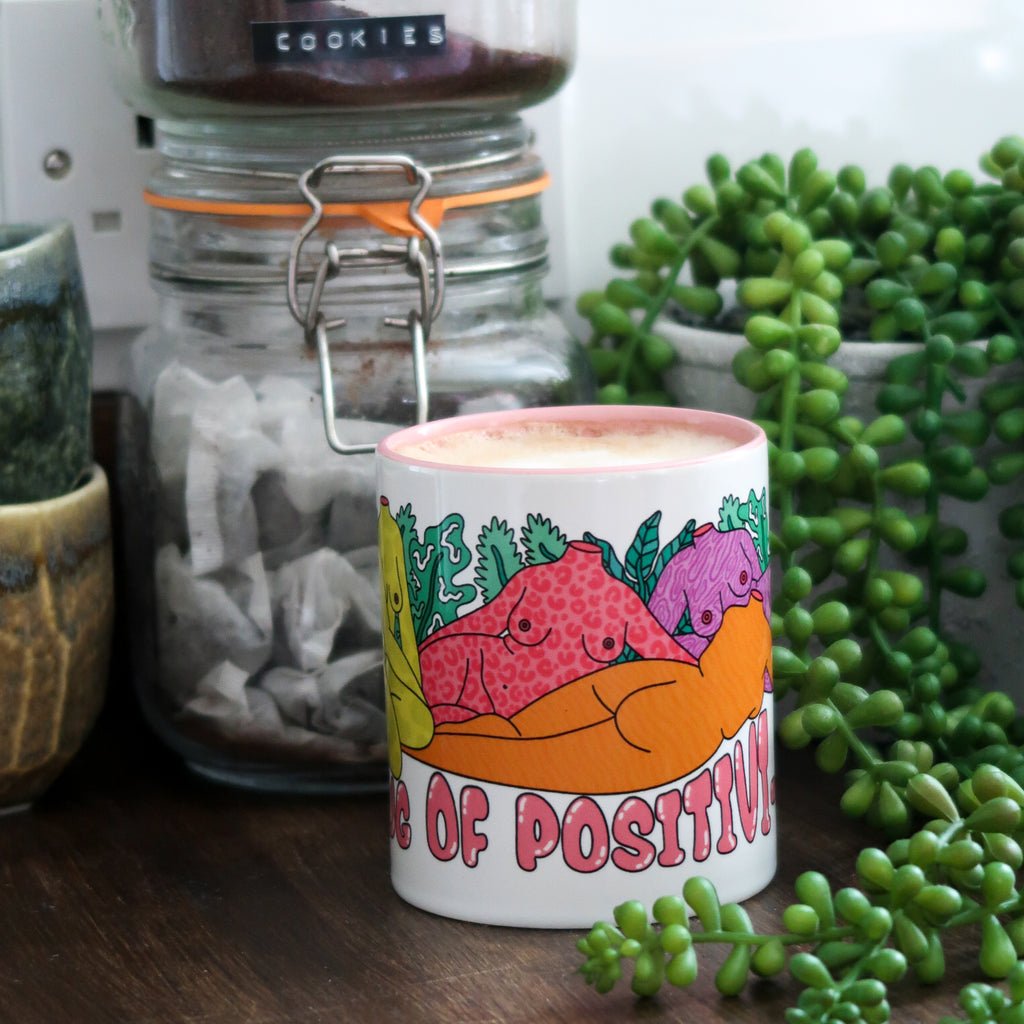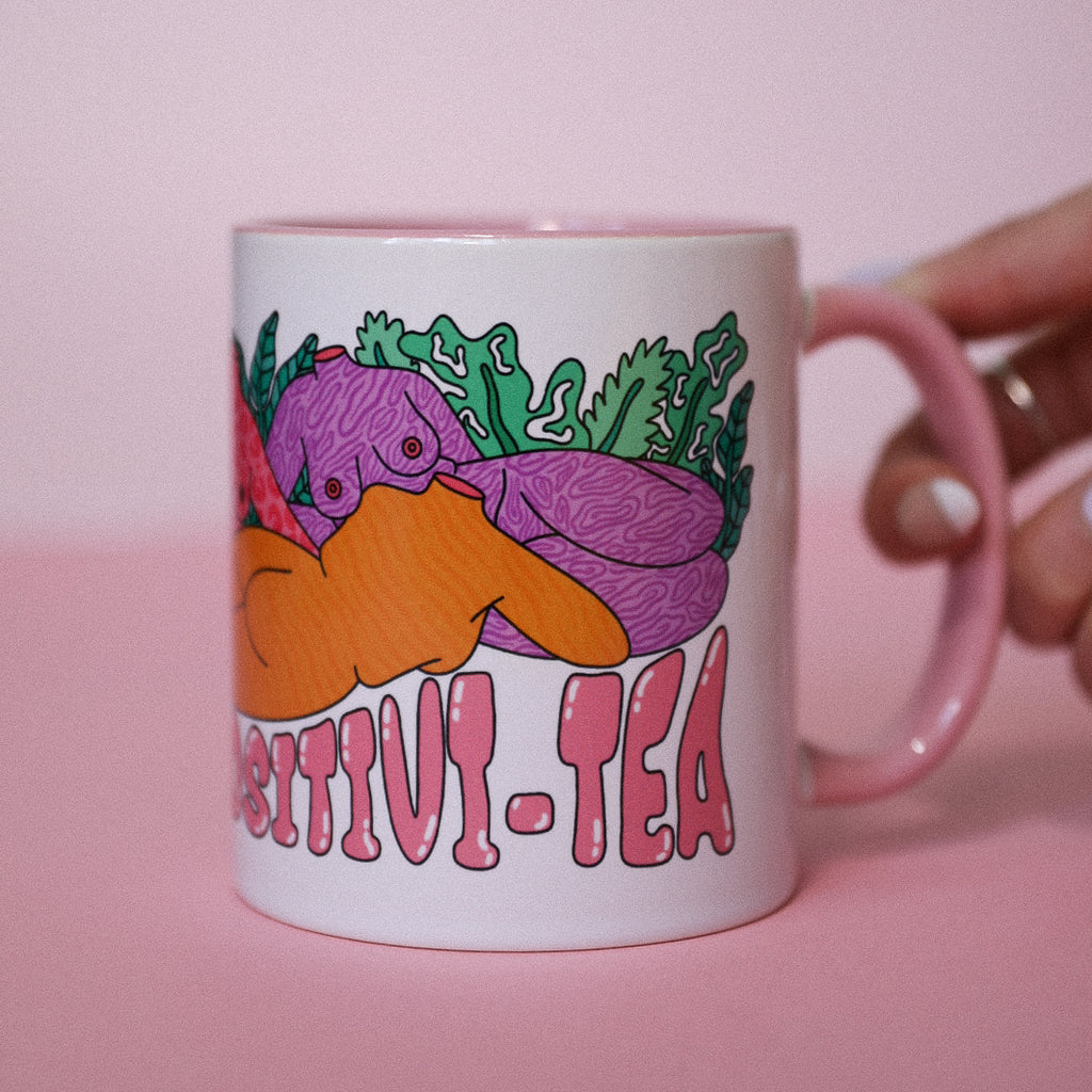 The new and improved second generation of the product that started it all. The mug of positivi-tea is the perfect gift for yourself or a fellow tea slurper. Everyone needs a little more positivi-tea in their lives… and it’s covered in naked ladies, what more could you ask for?